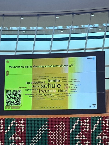 Anschließend wurde das frisch erworbene Wissen in einem Quiz getestet, bei dem die Schülerinnen und Schüler Fragen rund um die Arbeit des Landtags beantworten konnten.