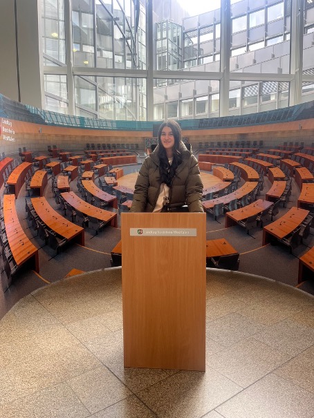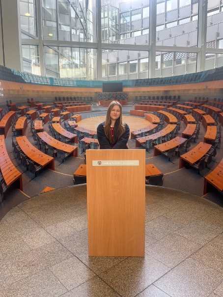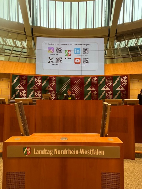 Schon der erste Programmpunkt war ein eindrucksvolles Erlebnis: Im Plenarsaal durften die Jugendlichen auf den Sitzen der Abgeordneten Platz nehmen und bekamen einen unmittelbaren Eindruck davon, wie politische Entscheidungen im Land Nordrhein-Westfalen entstehen. In einem kleinen gedanklichen Experiment schlüpften sie sogar in die Rolle verschiedener Abgeordneten – eine spannende Perspektive auf demokratische Prozesse.